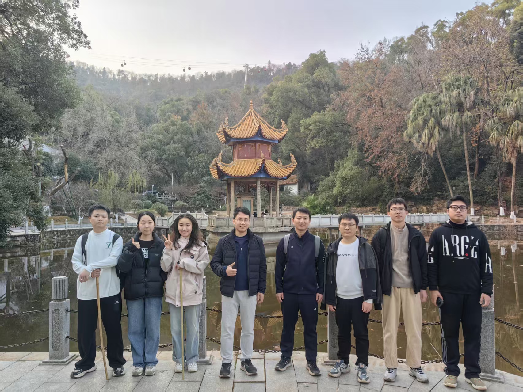 2025年12月14日,姚文轩课题组全体成员相聚岳麓山,开展了一次内容充实、氛围融洽的团建活动——共同攀登岳麓山心形线。此次活动以亲近自然、锻炼体魄、增进交流为目的,在冬日午后的暖阳中展开。