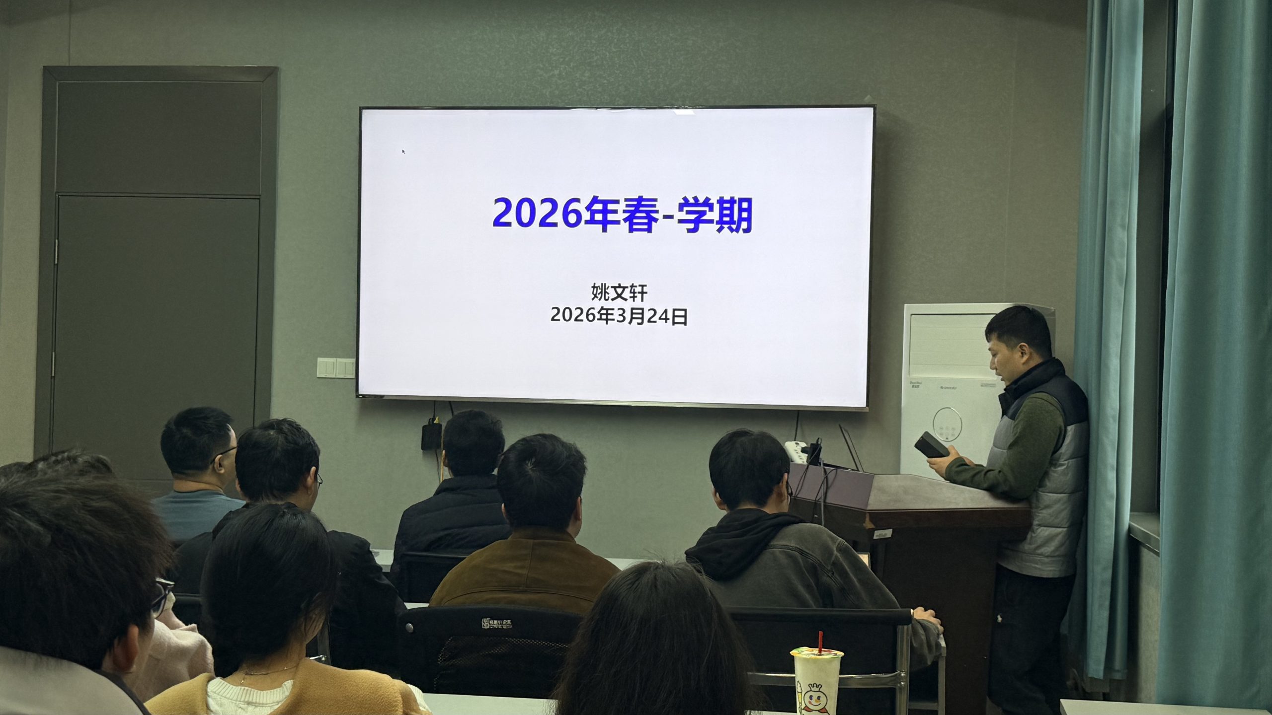 最后,姚文轩老师作总结讲话。他强调,面对AI技术,要秉持“不抗拒、不依赖”的态度,始终保持独立思考与判断能力,坚守科研本心;同时,他倡导大家培养公益心,主动承担责任;他鼓励学生强化自驱力,自主制定科研计划,认真准备组会汇报;为规范管理、锤炼作风,他宣布实行“值班制”,以严谨自律的态度投入科研。